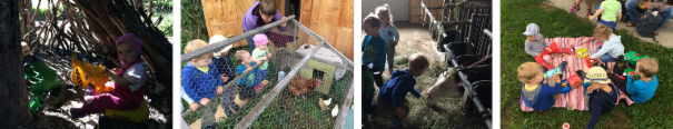 Freies Spiel, gemeinsame Brotzeit und angeleitetes Spielen und Werkeln in der freien Natur ermöglichen den Kindern einen ersten sanften Schritt in das Erleben ohne Eltern.